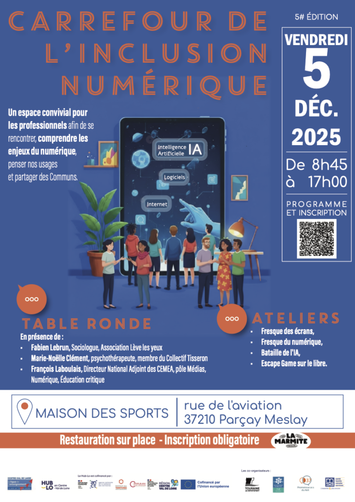 J’ai expérimenté en équipe un large champ de techniques et de supports de médiation numérique : sensibilisation à l’éthique et à l’écologie numérique, sensibilisation à la veille numérique, projets multipartenaires, Fab Lab (imprimante 3D, découpe vinyle et presse à chaud, badgeuse), émission de radio mensuelle sur le numérique libre et responsable à Radio Béton, participation à une réunion d’organisation du Carrefour de l’inclusion numérique au conseil départemental